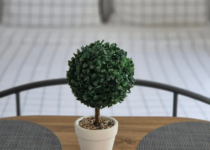 The apartment includes self-catering facilities, such as a full kitchen with coffee and tea making equipment, a refrigerator, and a cooktop.